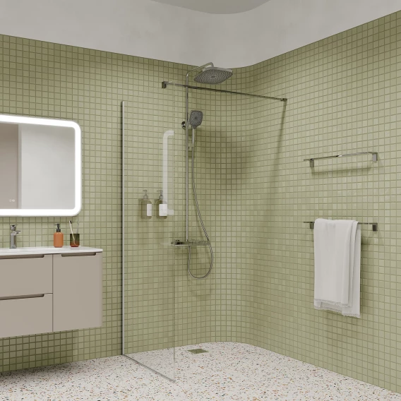 Аэратор, Эксцентрики, Душевой шланг, Душевая лейка, Держатель для душевой лейки, Полочка, Верхний душ, Кронштейн, Штанга душевая, Термостат