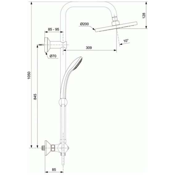 Душевой шланг, Душевая лейка, Держатель для душевой лейки, Верхний душ
