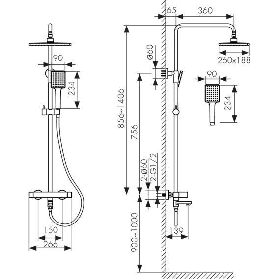 Душевая система Kaiser Cube 01582 260x188 мм, со смесителем, хром