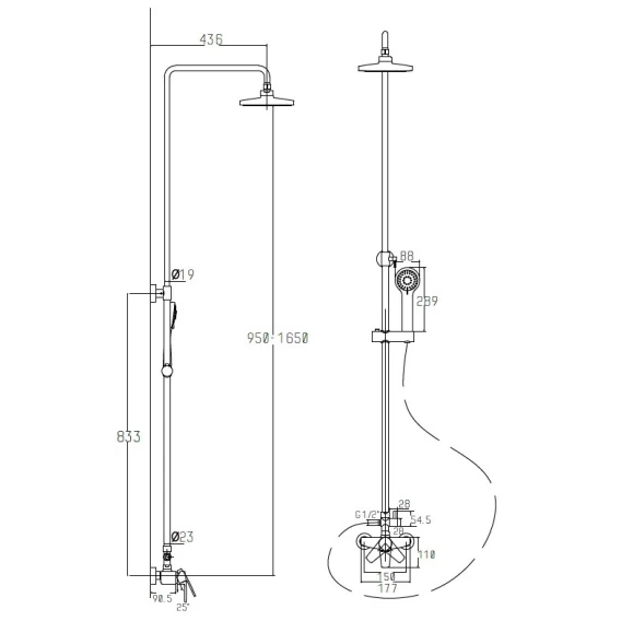 Металлическая розетка, Эксцентрики, Душевой шланг, Душевая лейка, Держатель для душевой лейки, Верхний душ, Смеситель, Кронштейн, Штанга душевая