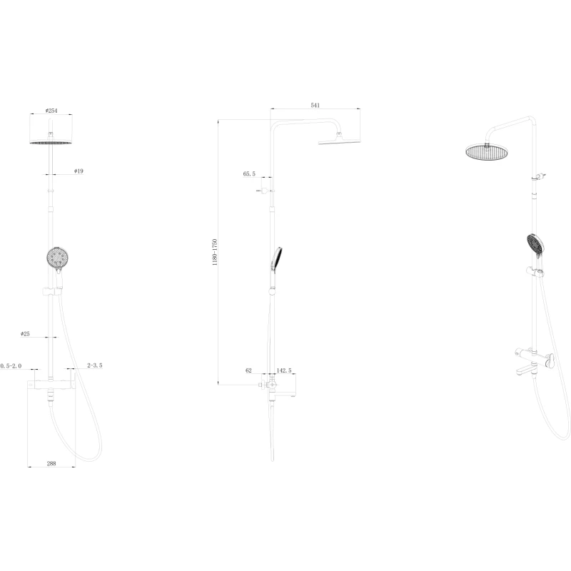Аэратор, Металлическая розетка, Эксцентрики, Душевой шланг, Душевая лейка, Держатель для душевой лейки, Верхний душ, Смеситель, Кронштейн, Штанга душевая