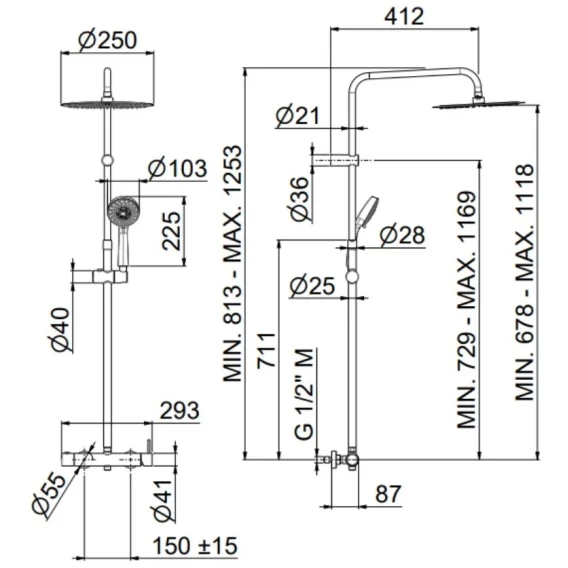 Душевая система Kerama Marazzi Nota 8236KM.21.018 250 мм, со смесителем, хром