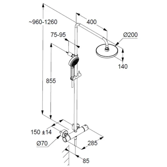 Душевая система Splenka S05.24 250 мм, со смесителем, хром