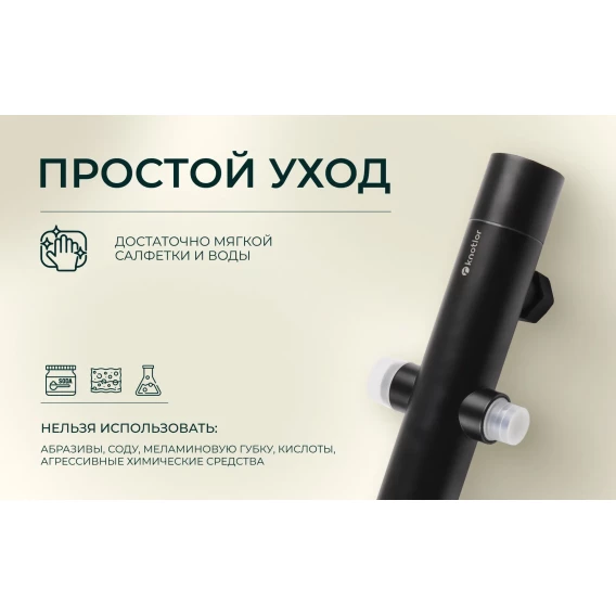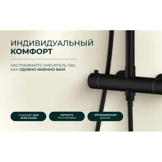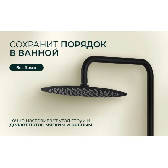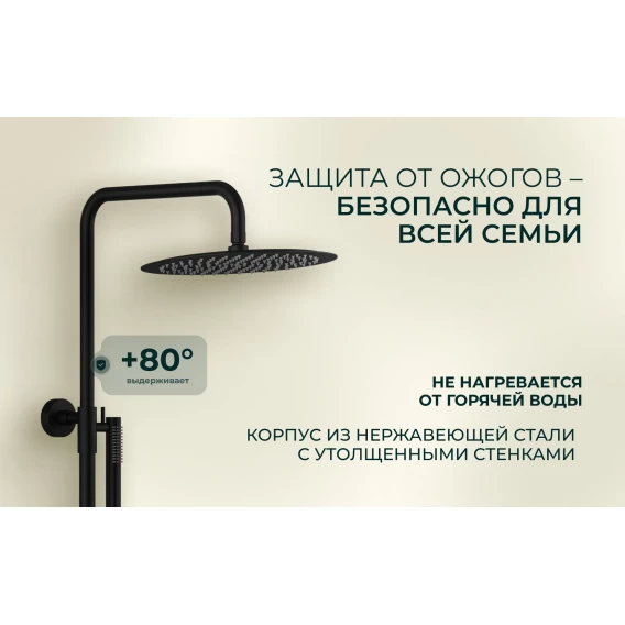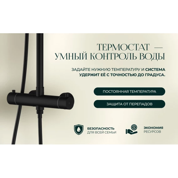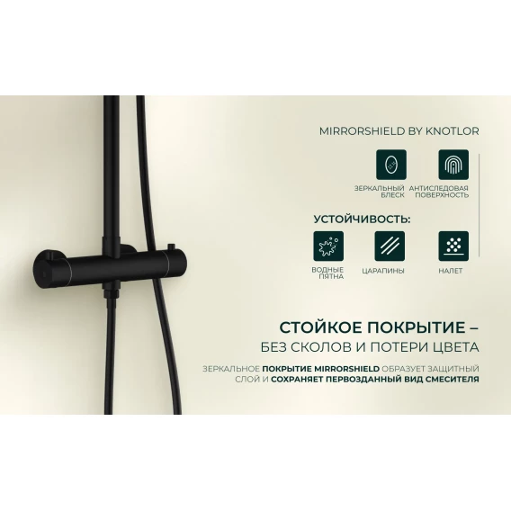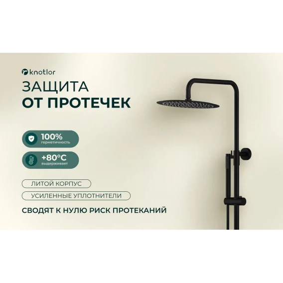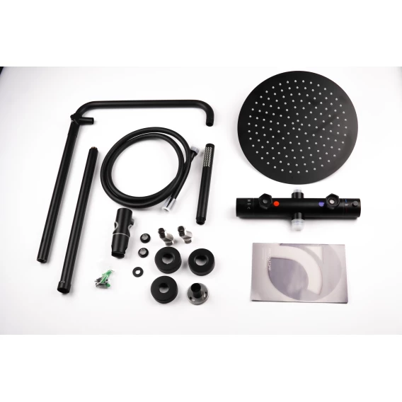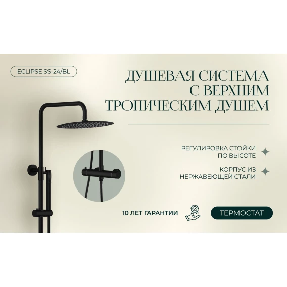 Душевая система Knotlor Eclipse SS-24/BL 300 мм, с термостатом, черный матовый