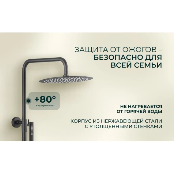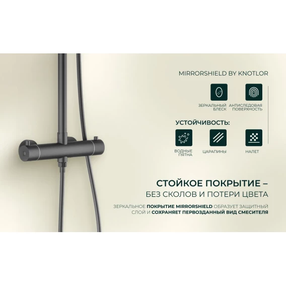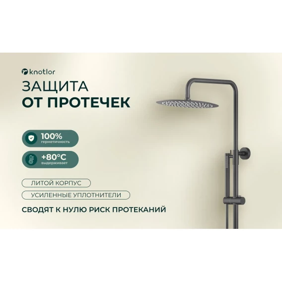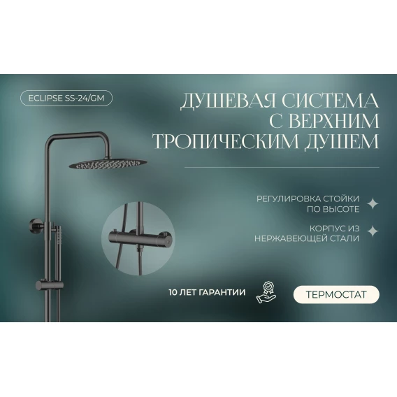 Душевая система Knotlor Eclipse SS-24/GM 300 мм, с термостатом, вороненая сталь