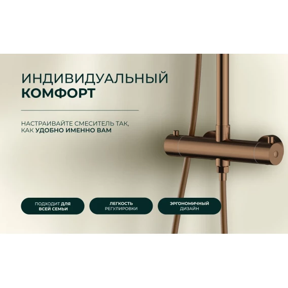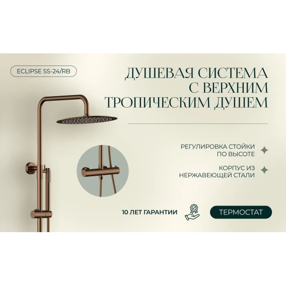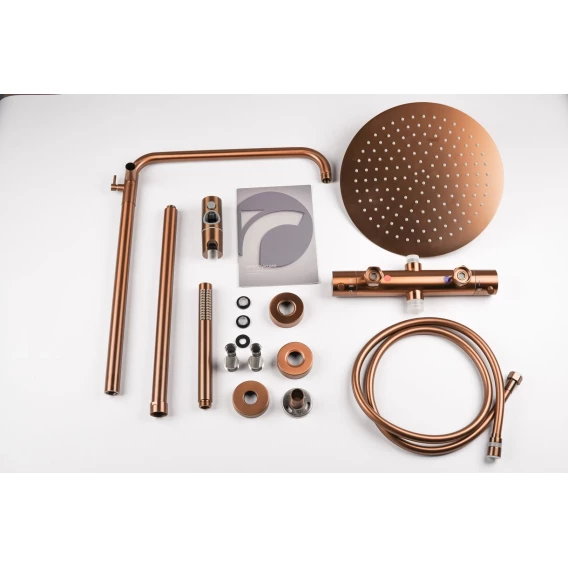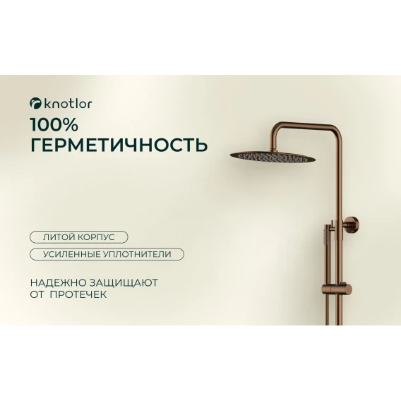 Душевая система Knotlor Eclipse SS-24/RB 300 мм, с термостатом, бронза матовая