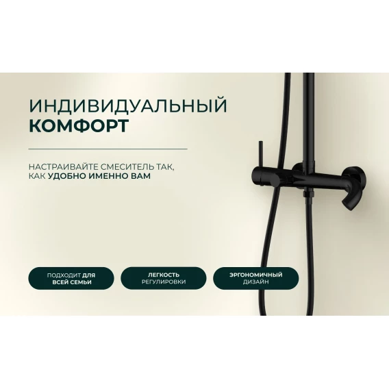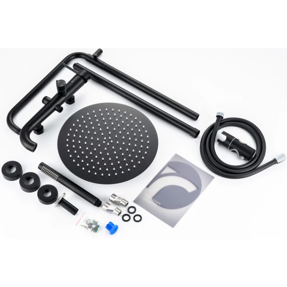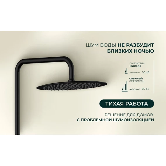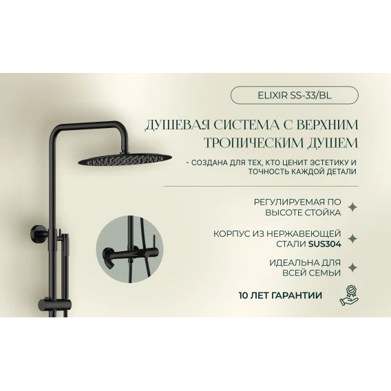 Душевая система Knotlor Elixir SS-33/BL 300 мм, со смесителем, черный матовый