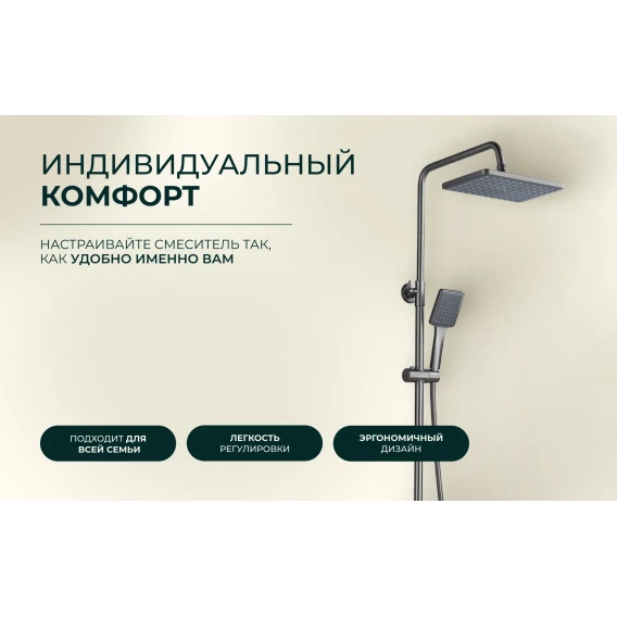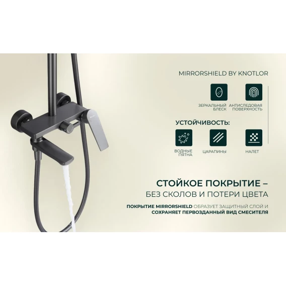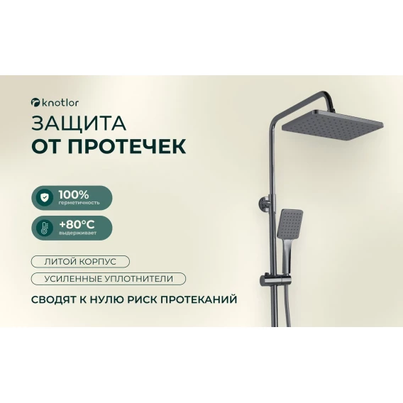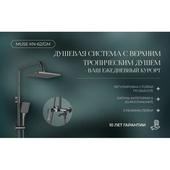 Душевая система Knotlor Muse KN-62/GM 280x190 мм, со смесителем, вороненая сталь