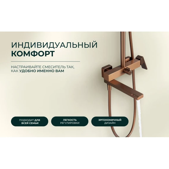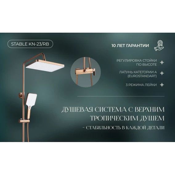 Душевая система Knotlor Stable KN-23/RB 280x190 мм, со смесителем, бронза матовая