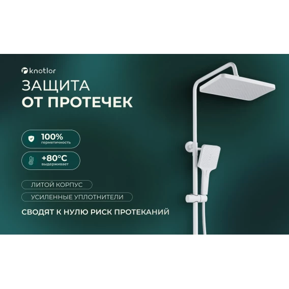 Душевая система Knotlor Stable KN-23/WY 280x190 мм, со смесителем, белый матовый