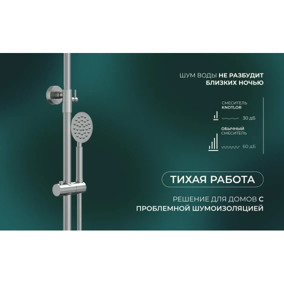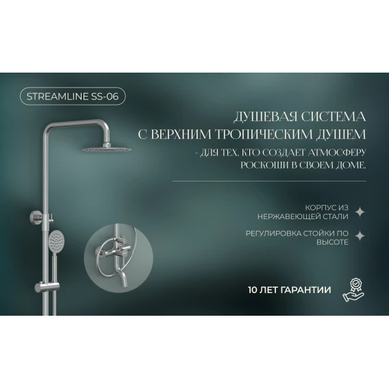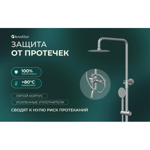 Душевая система Knotlor Streamline SS-06 200 мм, со смесителем, нержавеющая сталь