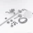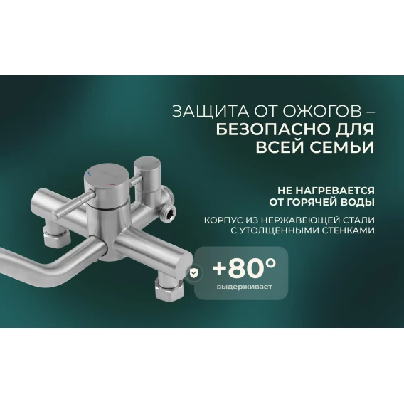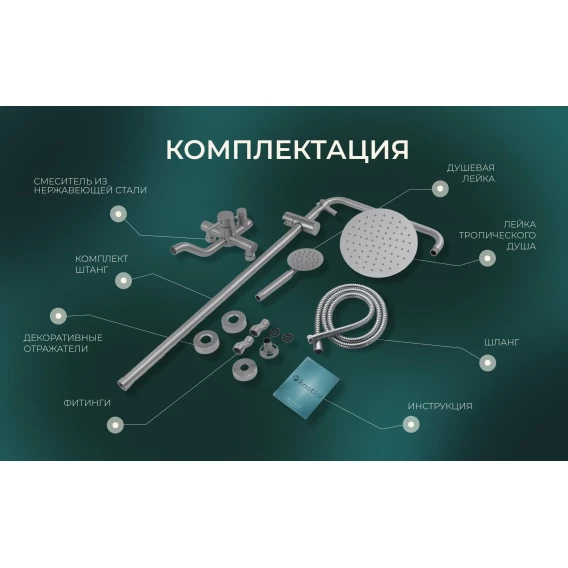 Аэратор, Металлическая розетка, Эксцентрики, Душевой шланг, Душевая лейка, Держатель для душевой лейки, Смеситель, Кронштейн, Штанга душевая