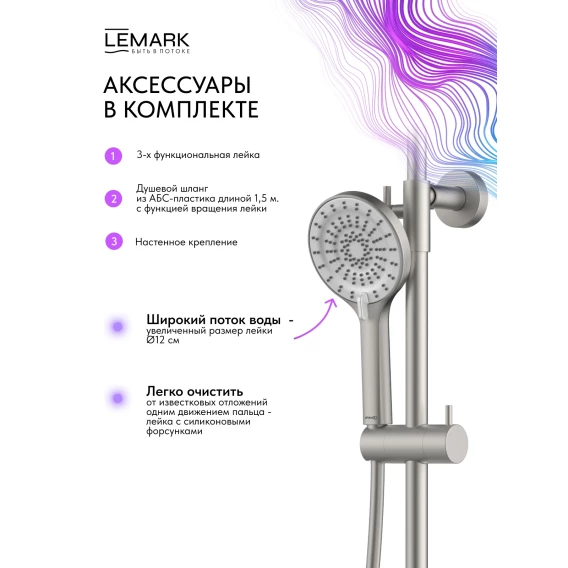 Душевая система Lemark Beluga LMF-8025B-BN 300 мм, со смесителем, никель матовый