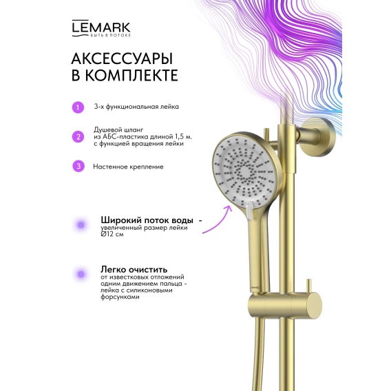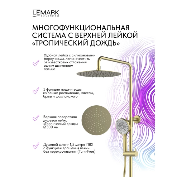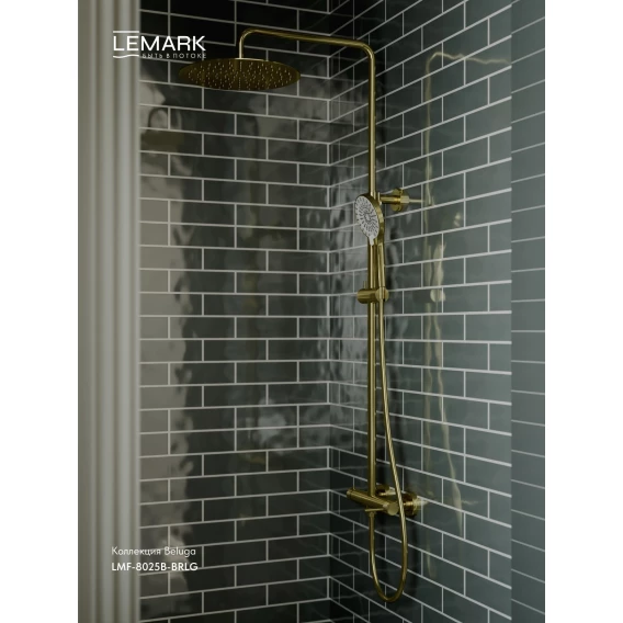 Душевая система Lemark Beluga LMF-8025B-BRLG 300 мм, со смесителем, светлое золото матовый