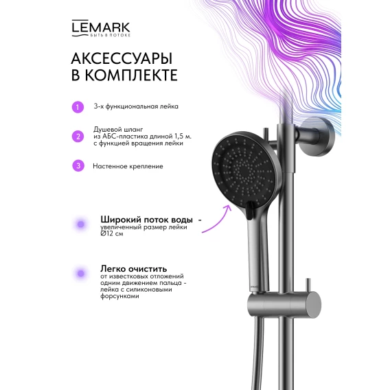 Душевая система Lemark Beluga LMF-8025B-GM 300 мм, со смесителем, графит матовый