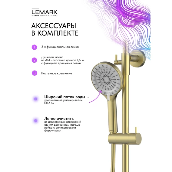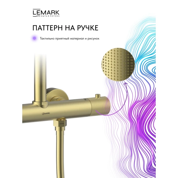 Душевая система Lemark Beluga LMF-8045B-BRLG 300 мм, с термостатом, светлое золото матовый