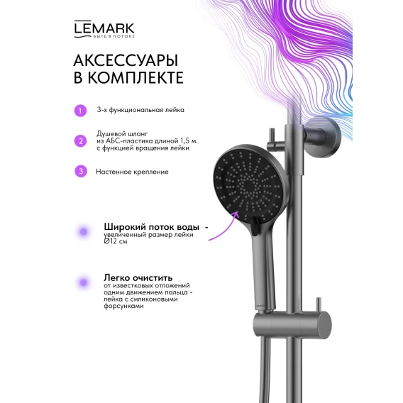 Душевой комплект Lemark Beluga LMF-8065B-GM 300 мм, с термостатом, графит матовый