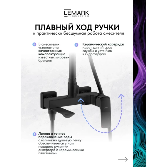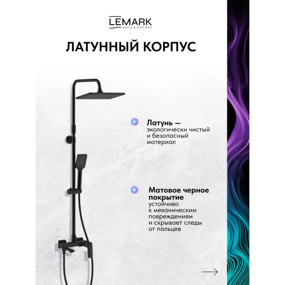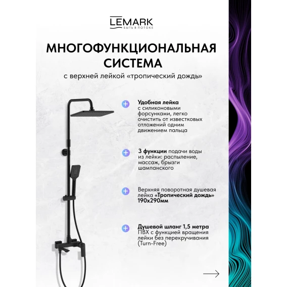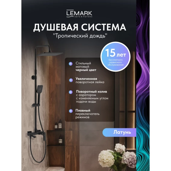 Душевая система Lemark Hosta LM12362BL 290x190 мм, со смесителем, черный матовый