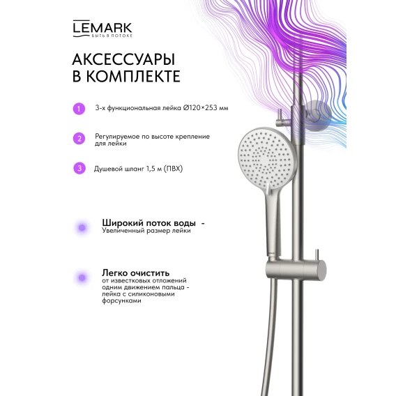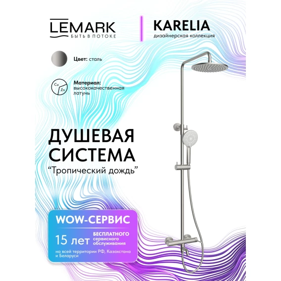 Душевая система Lemark Karelia LMF-2026S-BN 228 мм, со смесителем, никель матовый