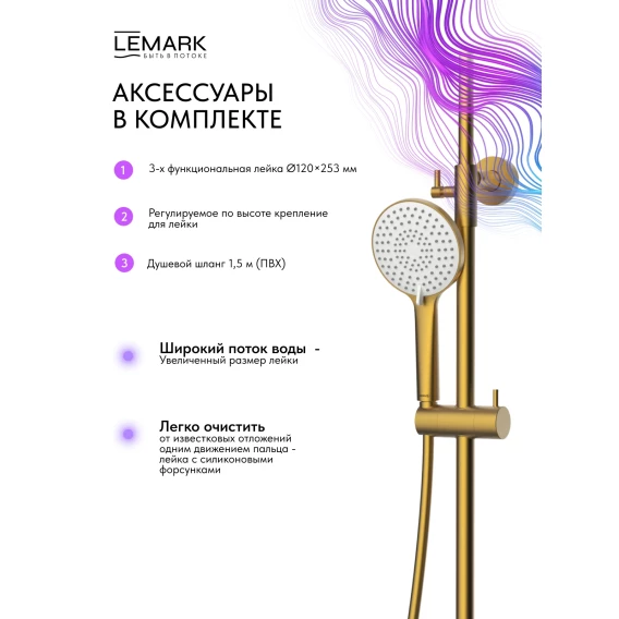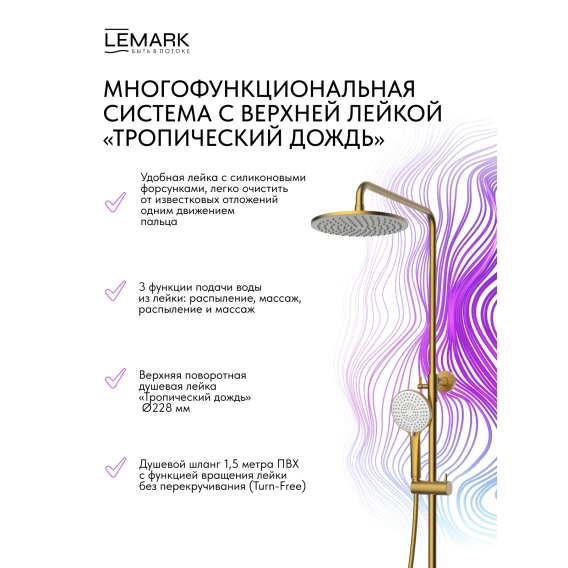 Душевая система Lemark Karelia LMF-2026S-BRG 228 мм, со смесителем, золотой матовый