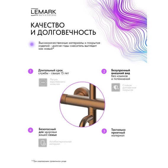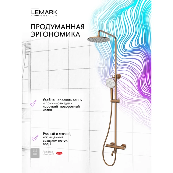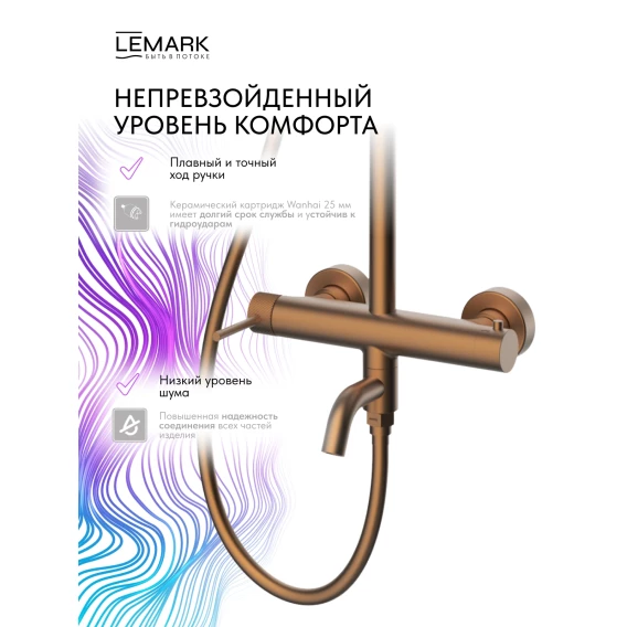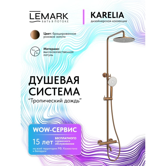 Душевая система Lemark Karelia LMF-2026S-BRRG 228 мм, со смесителем, розовое золото матовый