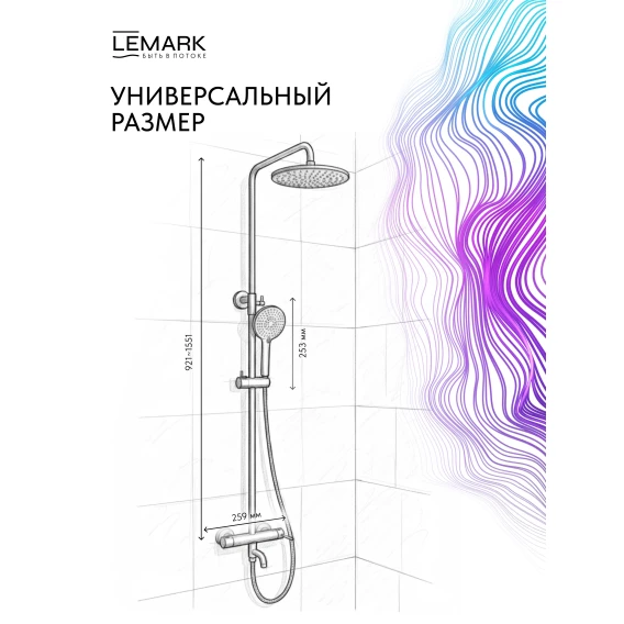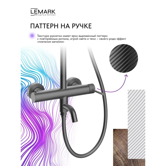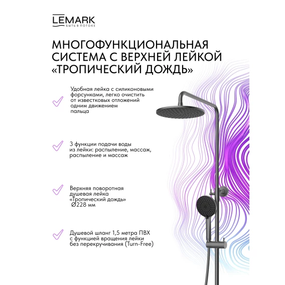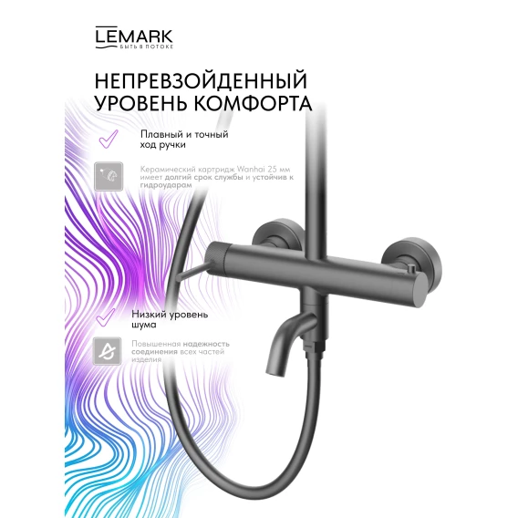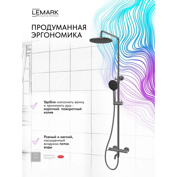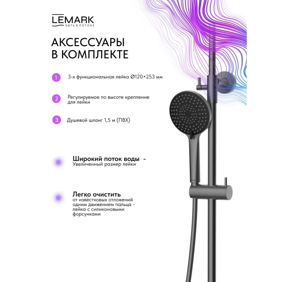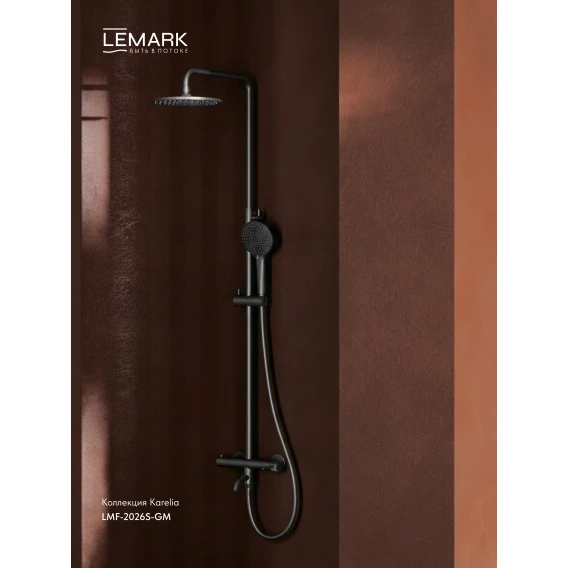 Душевая система Lemark Karelia LMF-2026S-GM 228 мм, со смесителем, графит матовый