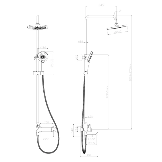 Аэратор, Металлическая розетка, Эксцентрики, Душевой шланг, Душевая лейка, Держатель для душевой лейки, Верхний душ, Смеситель, Мыльница, Штанга душевая