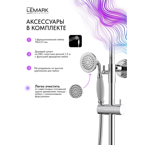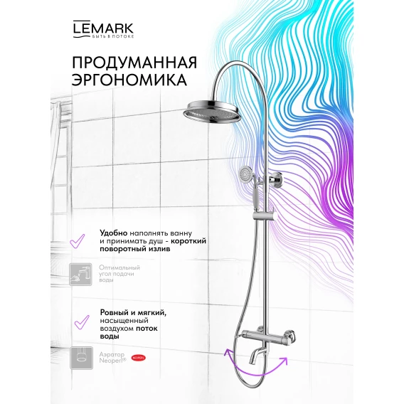 Душевая система Lemark Pushkin LMF-8626B-C 228 мм, со смесителем, хром