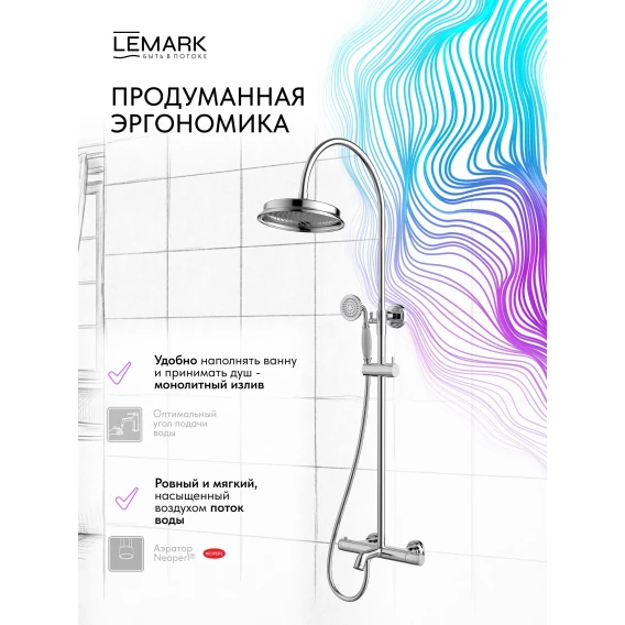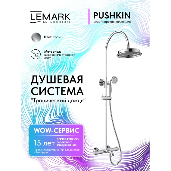 Душевая система Lemark Pushkin LMF-8646B-C 228 мм, с термостатом, хром