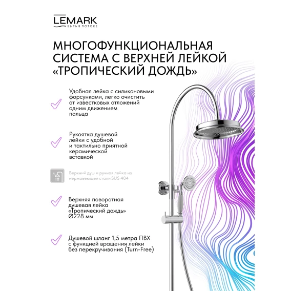 Душевая система Lemark Pushkin LMF-8626B-C 228 мм, со смесителем, хром