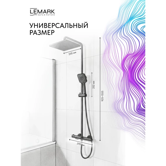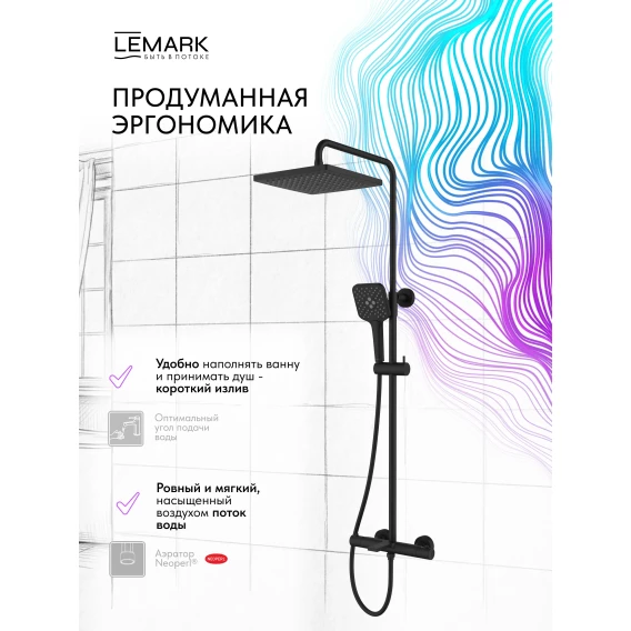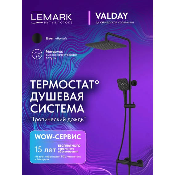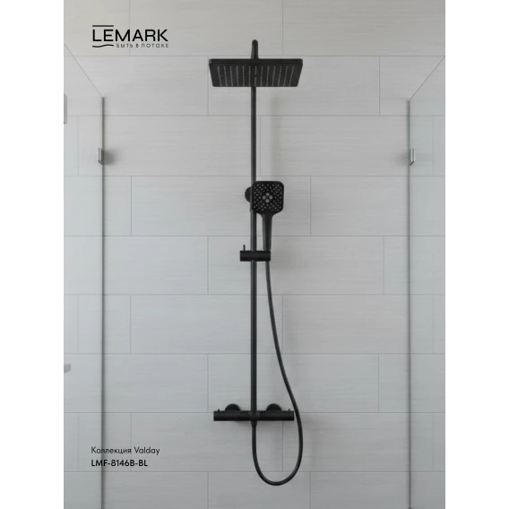 Душевая система Lemark Valday LMF-8146B-BL 250 мм, с термостатом, черный матовый