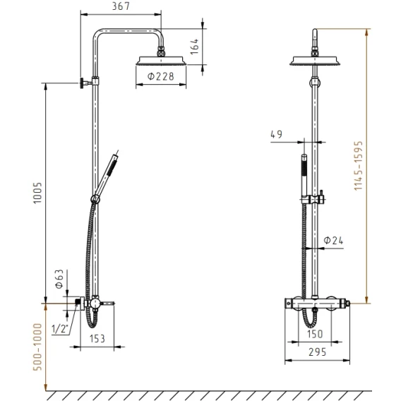 Металлическая розетка, Эксцентрики, Душевой шланг, Душевая лейка, Держатель для душевой лейки, Верхний душ, Смеситель, Кронштейн, Штанга душевая