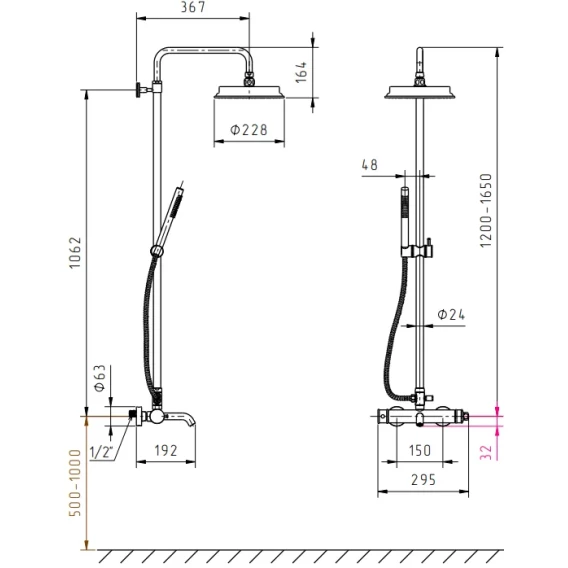 Металлическая розетка, Эксцентрики, Душевой шланг, Душевая лейка, Держатель для душевой лейки, Верхний душ, Смеситель, Кронштейн, Штанга душевая
