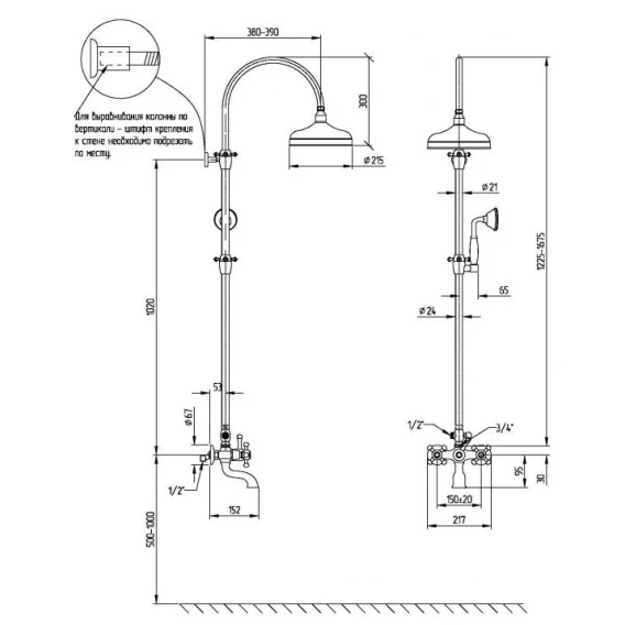 Металлическая розетка, Эксцентрики, Душевой шланг, Душевая лейка, Держатель для душевой лейки, Верхний душ, Смеситель, Кронштейн, Штанга душевая