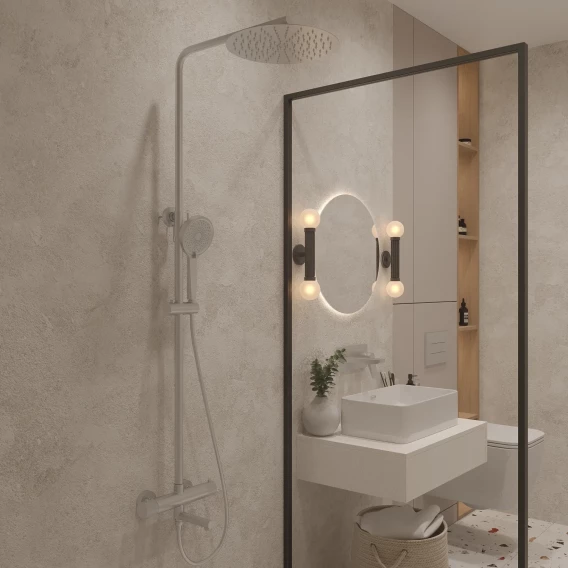 Аэратор, Металлическая розетка, Эксцентрики, Душевой шланг, Душевая лейка, Держатель для душевой лейки, Верхний душ, Кронштейн, Штанга душевая, Термостат