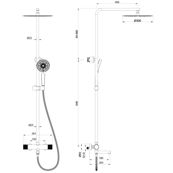 Душевая система Oliveeka OL-739902-MB 300 мм, с термостатом, черный матовый