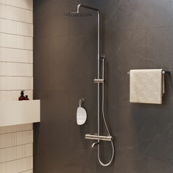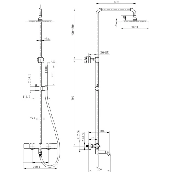 Аэратор, Металлическая розетка, Эксцентрики, Душевой шланг, Душевая лейка, Держатель для душевой лейки, Верхний душ, Кронштейн, Штанга душевая, Термостат