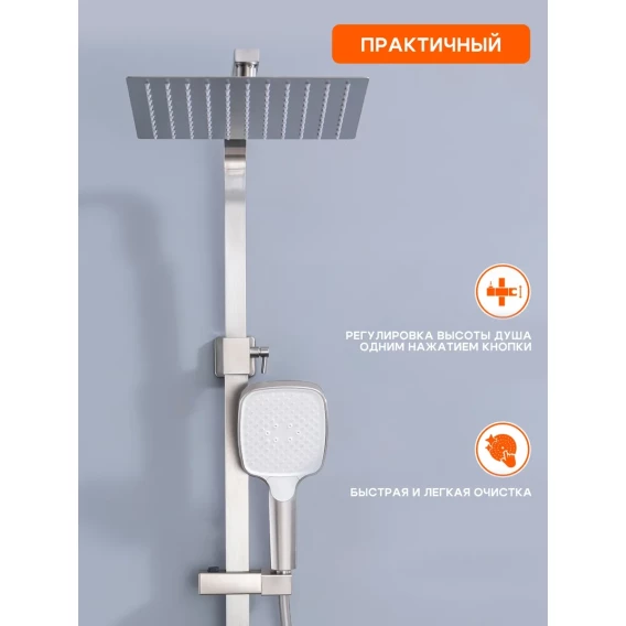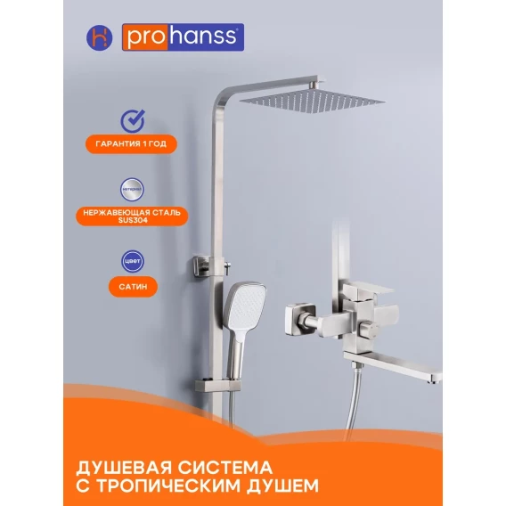 Душевая система Prohanss P30.24.05 250 мм, со смесителем, сатин
