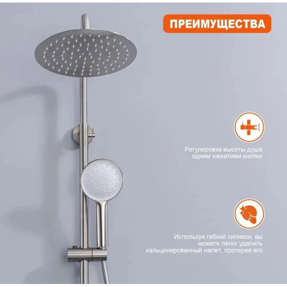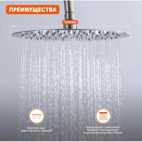 Душевая система Prohanss P31.24.05 250 мм, со смесителем, сатин