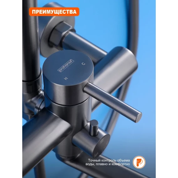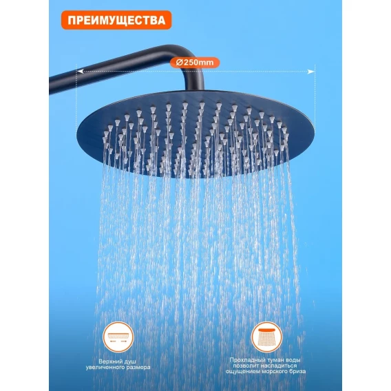 Душевая система Prohanss P31.24.09 250 мм, со смесителем, графит матовый