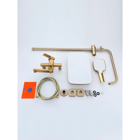 Аэратор, Металлическая розетка, Эксцентрики, Душевой шланг, Душевая лейка, Держатель для душевой лейки, Верхний душ, Смеситель, Кронштейн, Штанга душевая