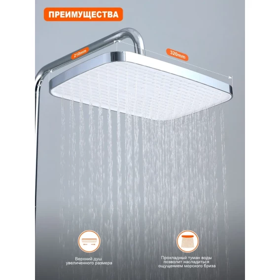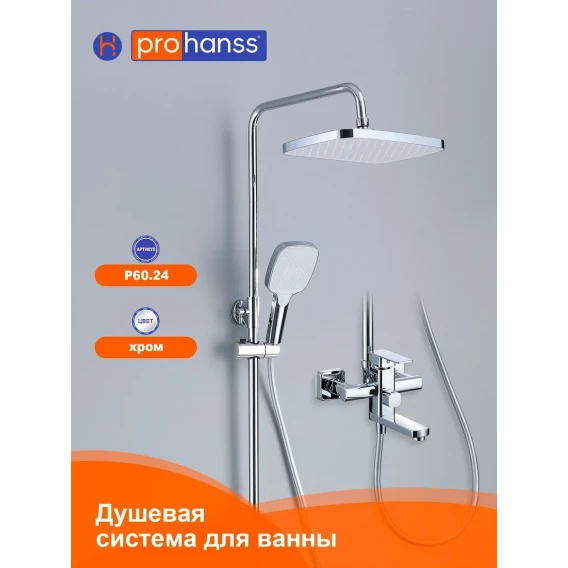 Душевая система Prohanss P60.24 320x210 мм, со смесителем, хром