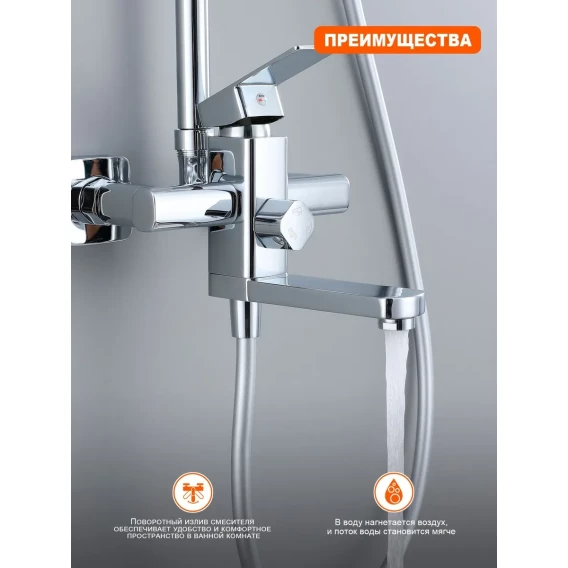 Аэратор, Металлическая розетка, Эксцентрики, Душевой шланг, Душевая лейка, Держатель для душевой лейки, Верхний душ, Смеситель, Кронштейн, Штанга душевая