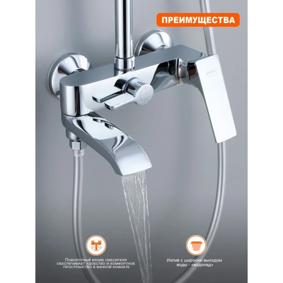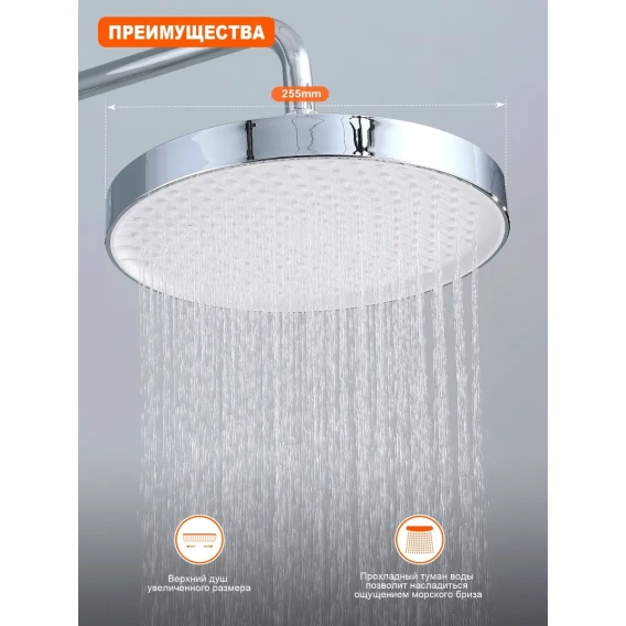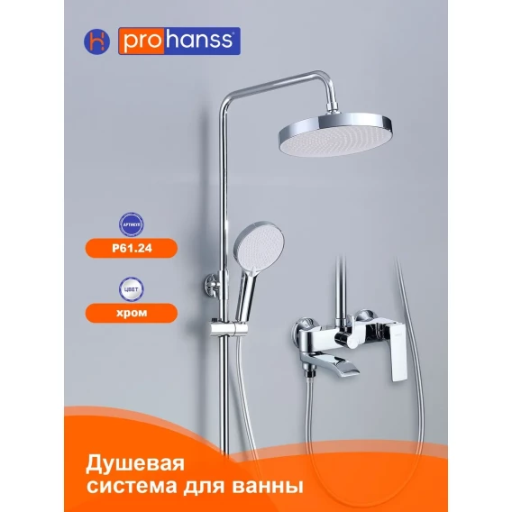 Душевая система Prohanss P61.24 255 мм, со смесителем, хром