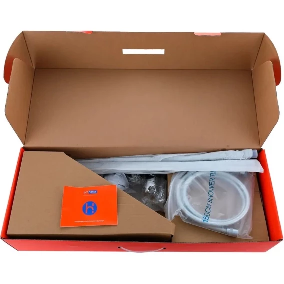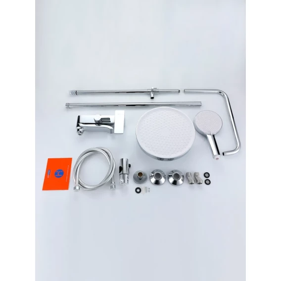 Аэратор, Металлическая розетка, Эксцентрики, Душевой шланг, Душевая лейка, Держатель для душевой лейки, Верхний душ, Смеситель, Кронштейн, Штанга душевая