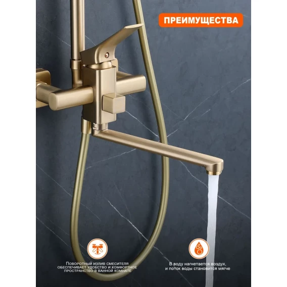 Душевая система Prohanss P62.24.03 320x210 мм, со смесителем, золотой матовый