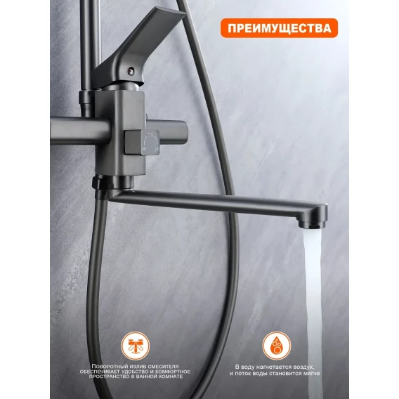 Душевая система Prohanss P62.24.09 320x210 мм, со смесителем, графит матовый