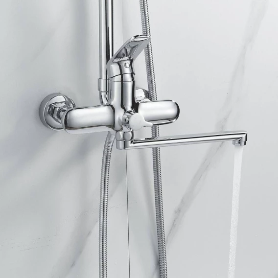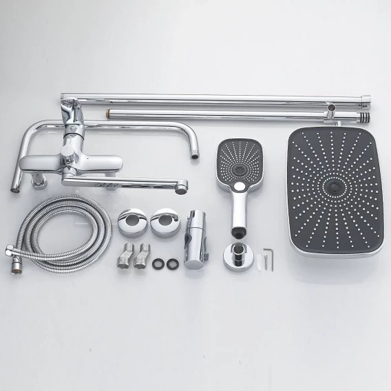 Аэратор, Металлическая розетка, Эксцентрики, Душевой шланг, Душевая лейка, Держатель для душевой лейки, Верхний душ, Смеситель, Кронштейн, Штанга душевая