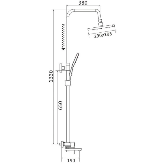 Душевая система Raffine F3696T 290x195 мм, со смесителем, оружейная сталь
