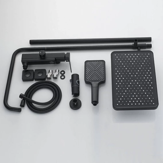 Аэратор, Металлическая розетка, Эксцентрики, Душевой шланг, Душевая лейка, Держатель для душевой лейки, Верхний душ, Смеситель, Кронштейн, Штанга душевая